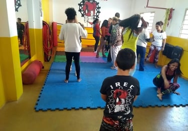 Em julho de 2018, realizamos um aulão de defesa pessoal exclusivo para mulheres na comunidade do Jd. São Jorge – SP, em parceria com a academia Max Fight.