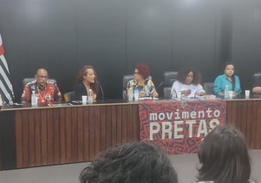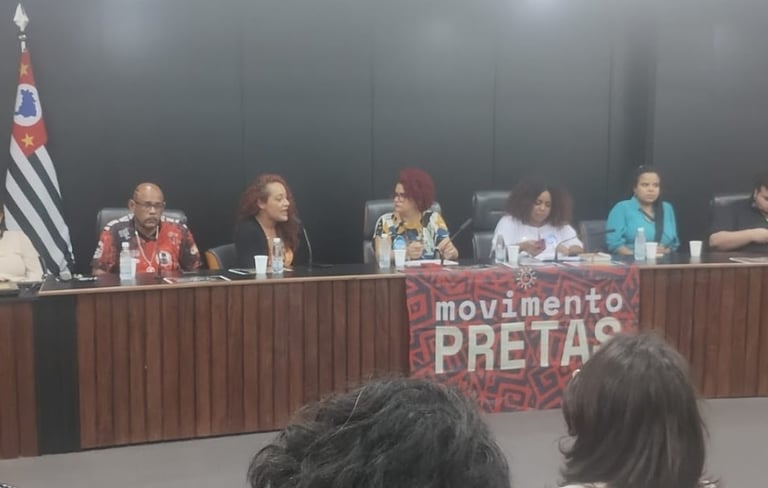 Mesa "Movimento Pretas" na audiência pública A falsa inclusão das pessoas com deficiência na educação pública, realizada em 10 de abril de 2024, na ALESP